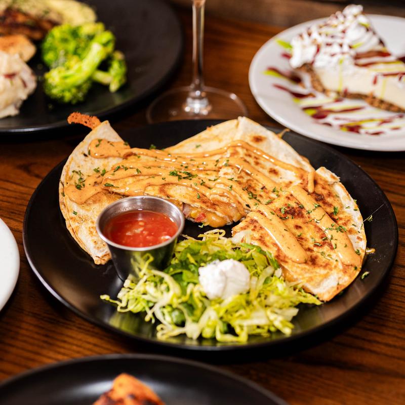 With Chicken $11.00 | Steak $12.00 • Filled with jack & cheddar cheese, corn salsa, taco seasoning, garnished with chipotle lime sauce & parsley